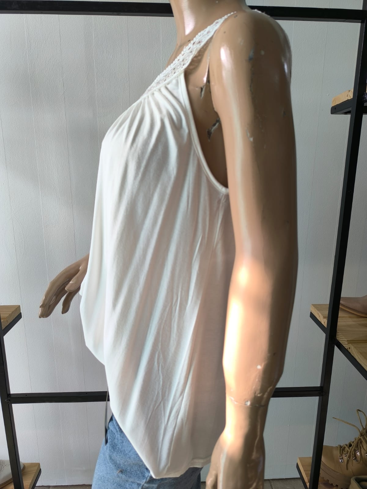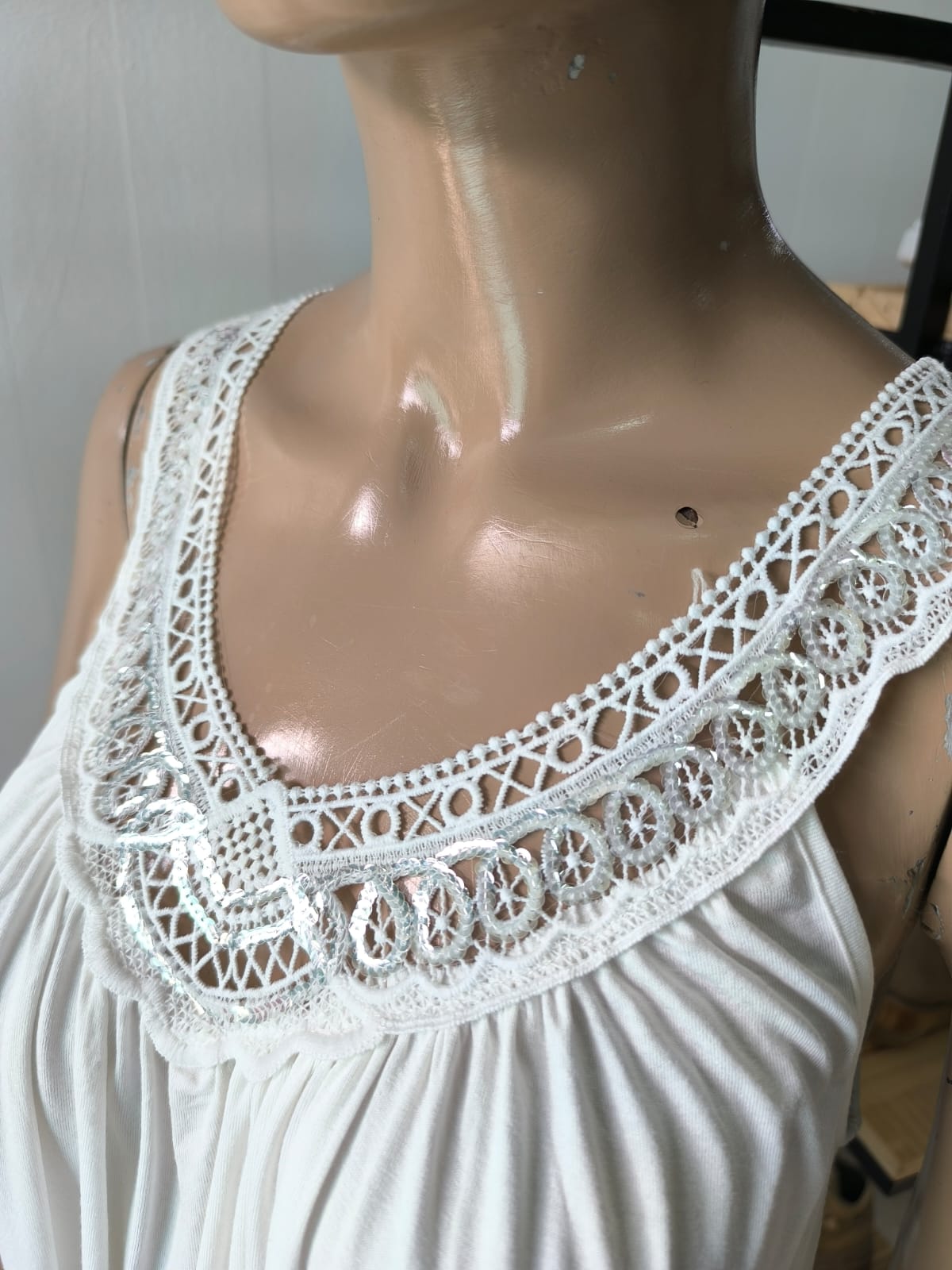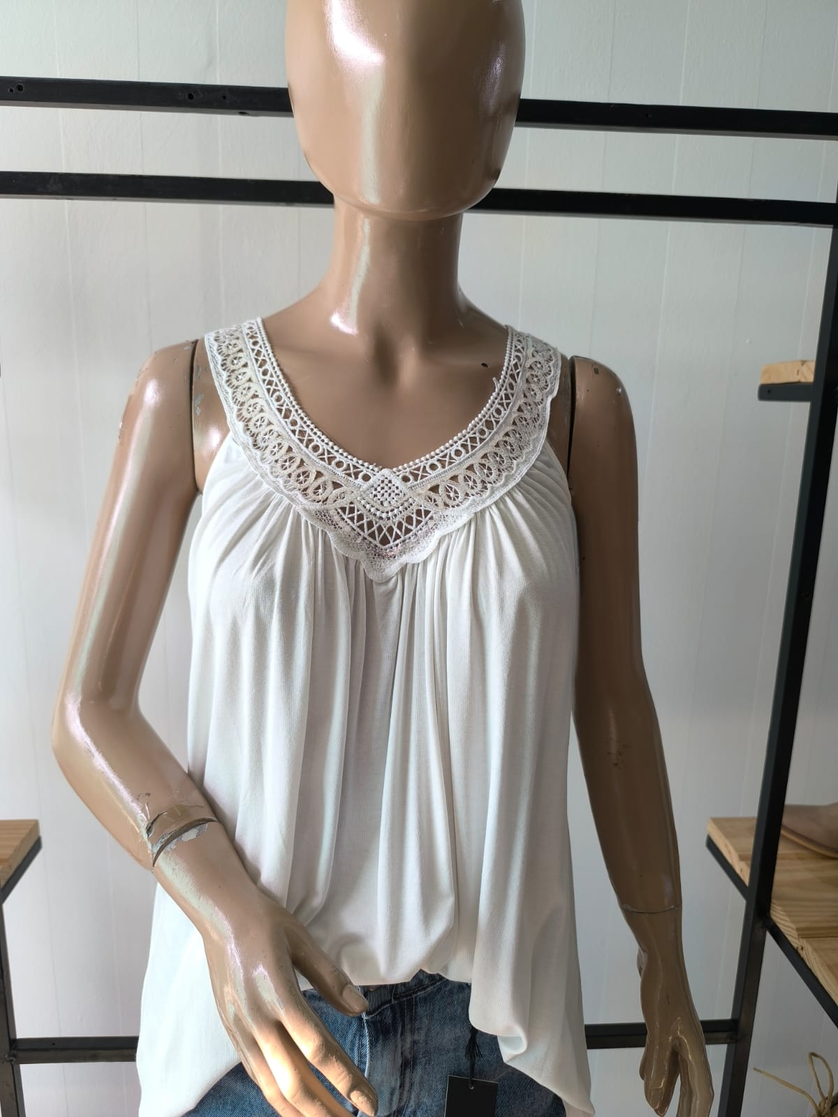 Musculosa Blanca Lycra de algodón con broderi en cuello
