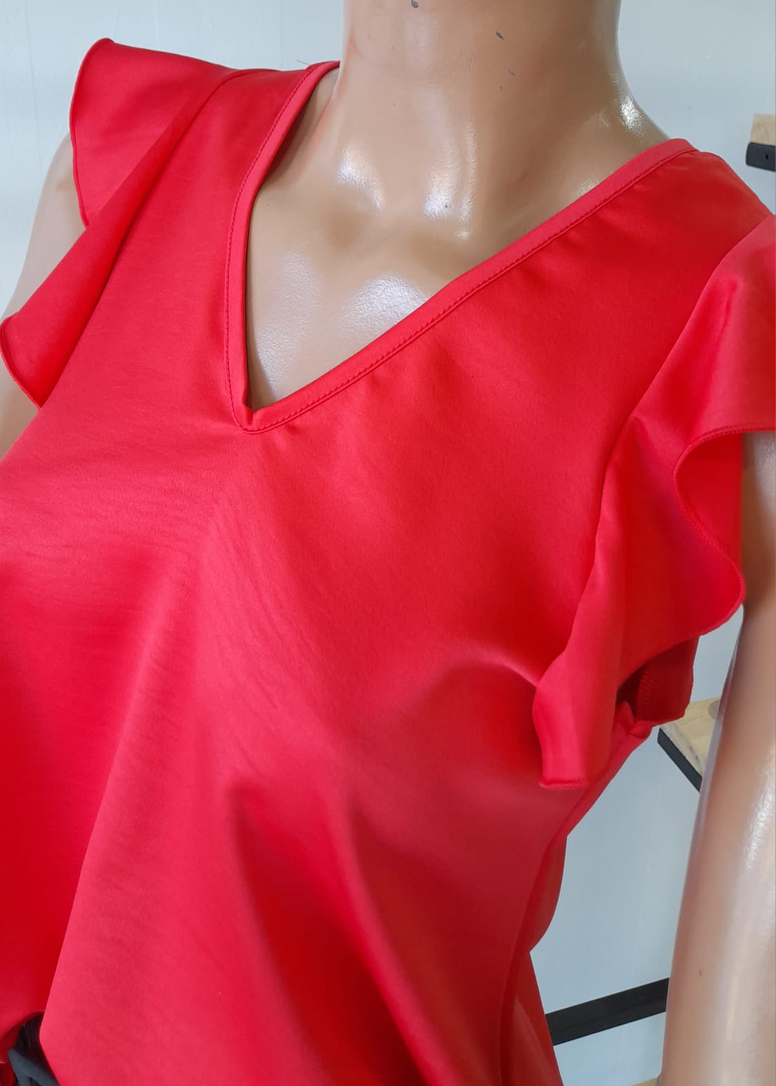 Musculosa Satén volados en manga