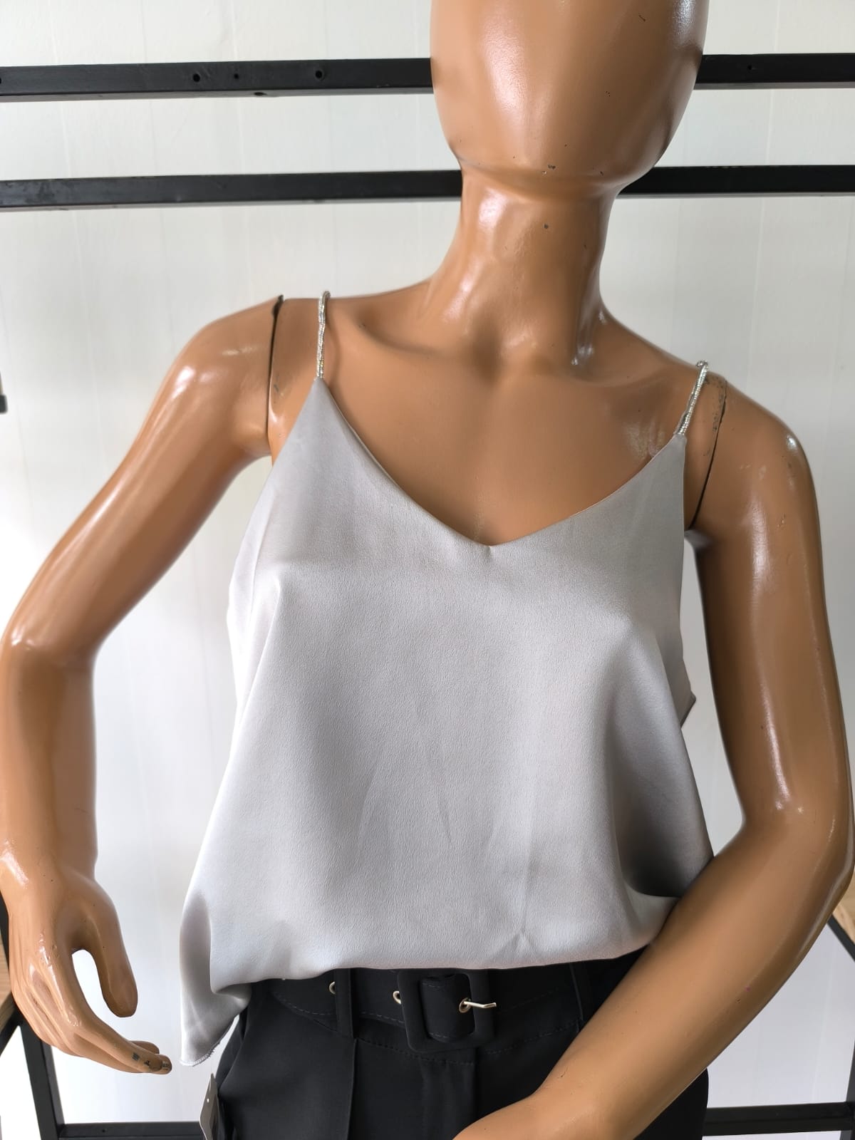Musculosa Satén bretel brillo gris plata
