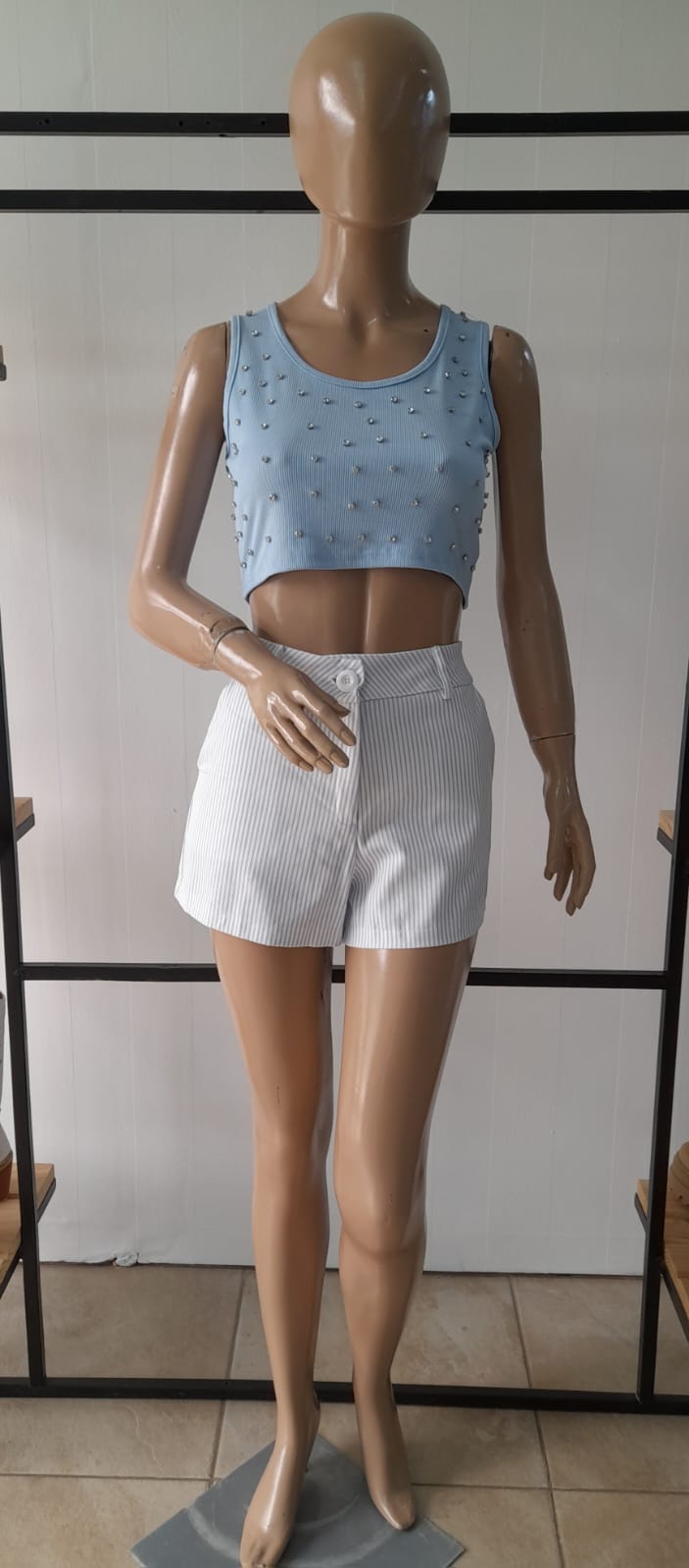 Short rayado gabardina.