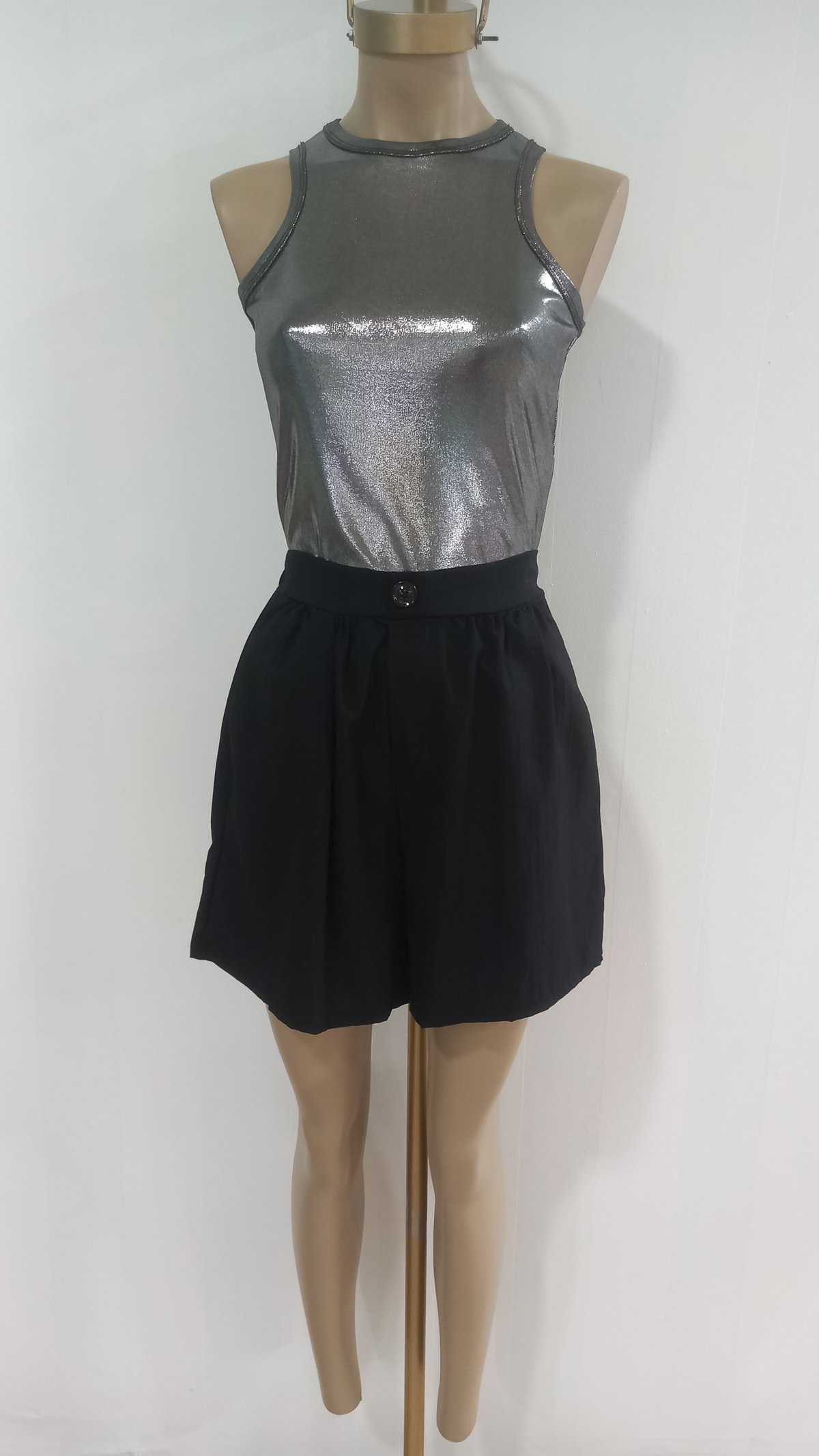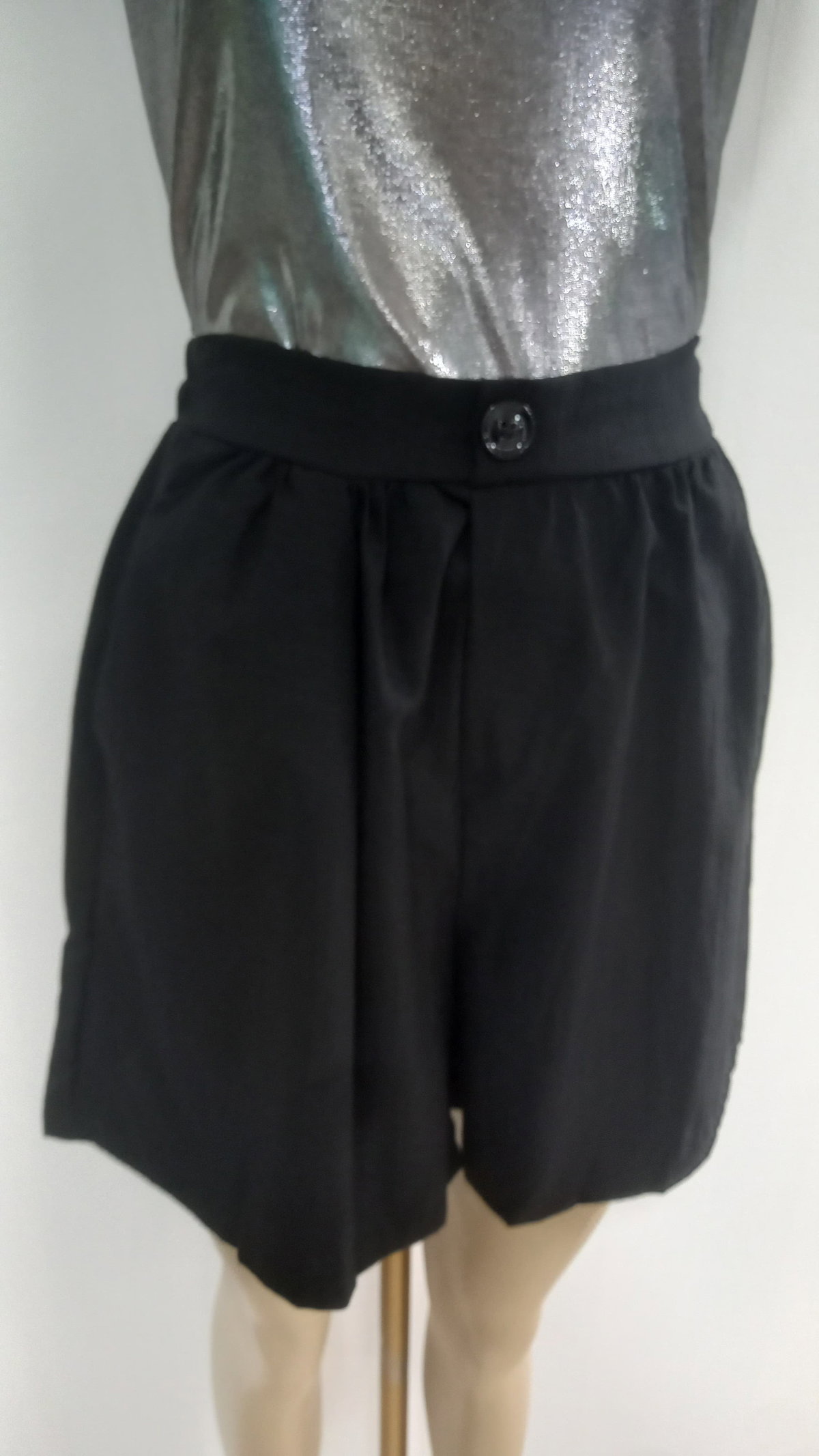 Short dama negro sastrero lino con bolsillos