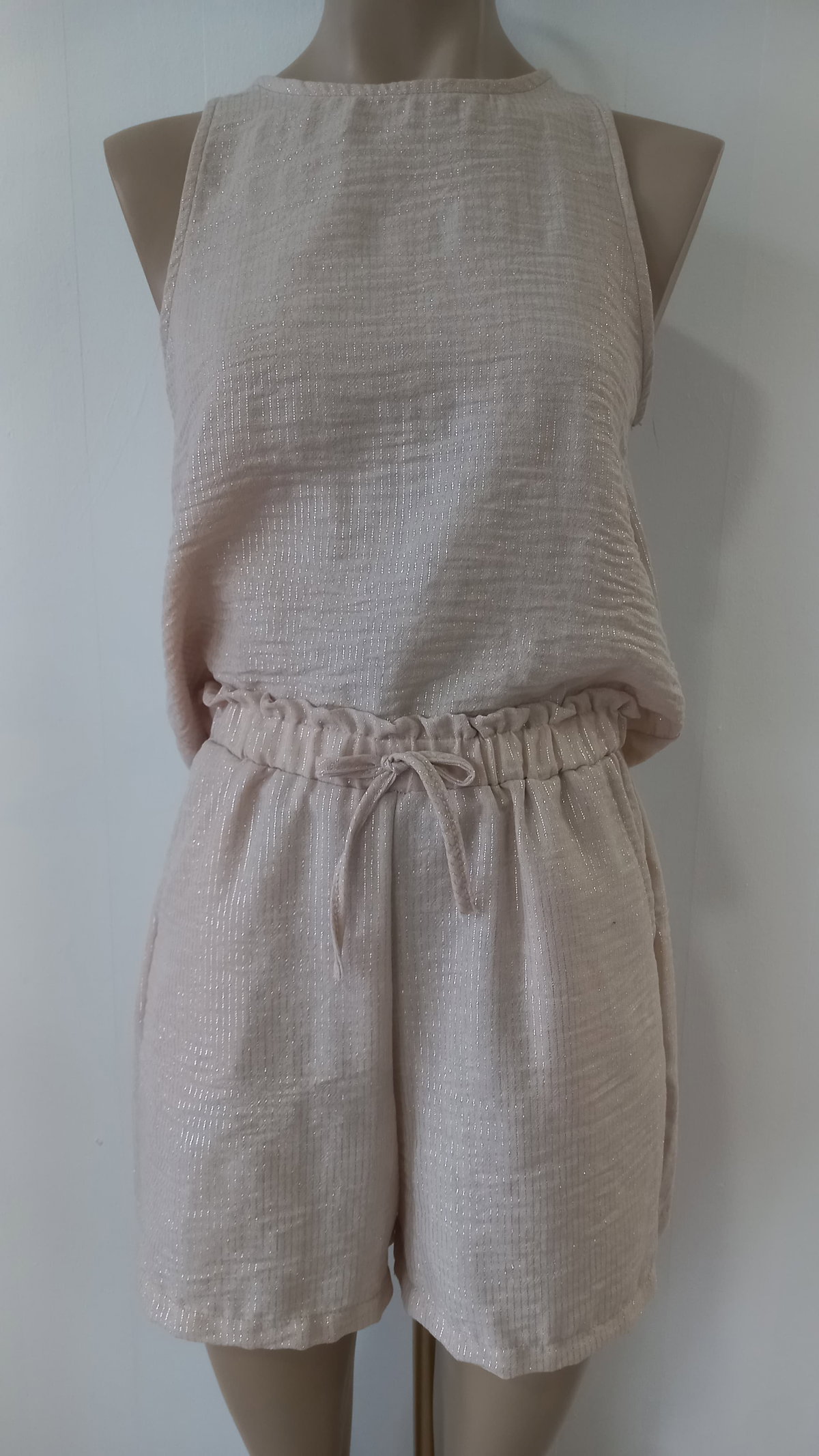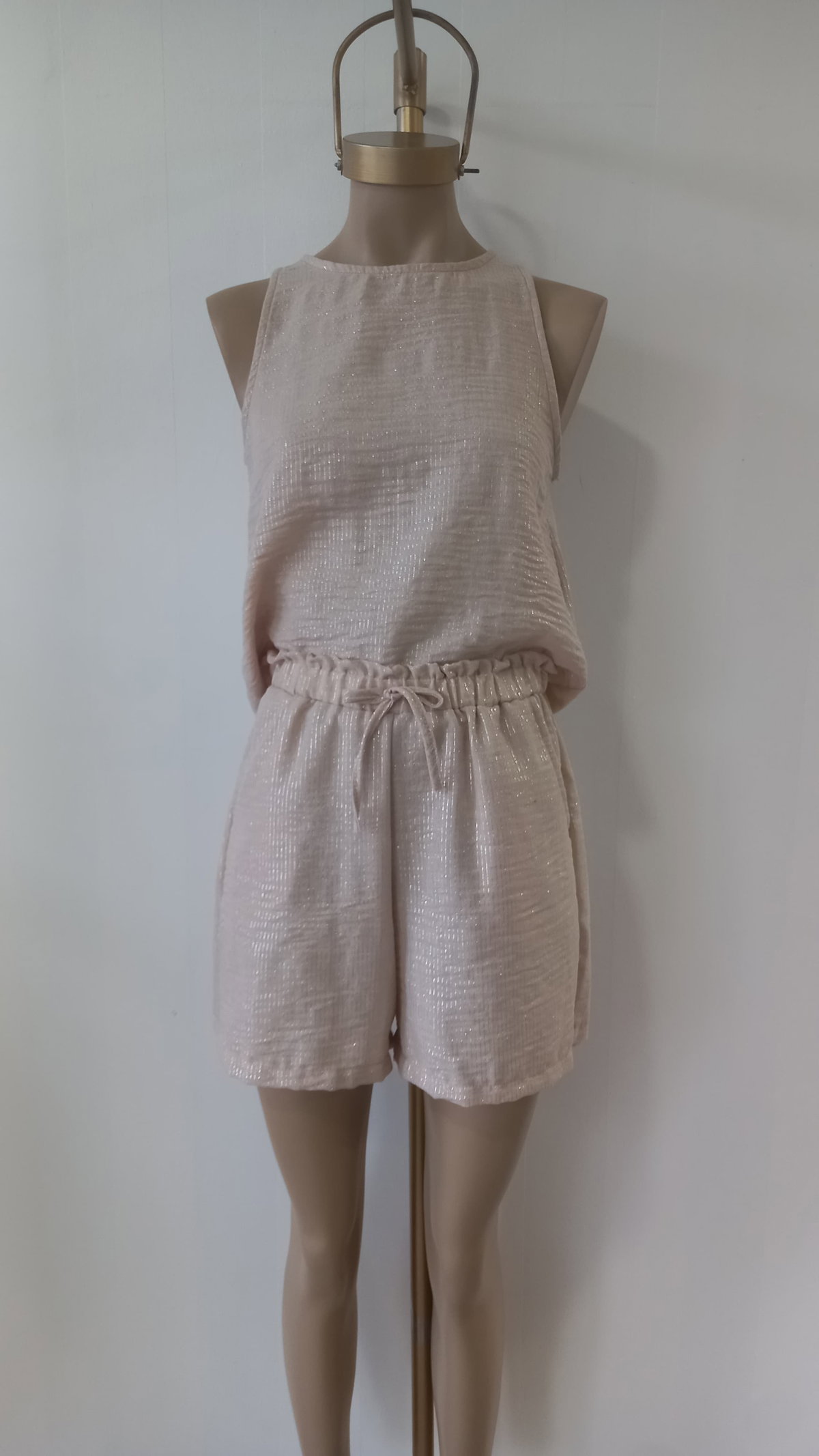 Short dama lino con brillo cintura elástico