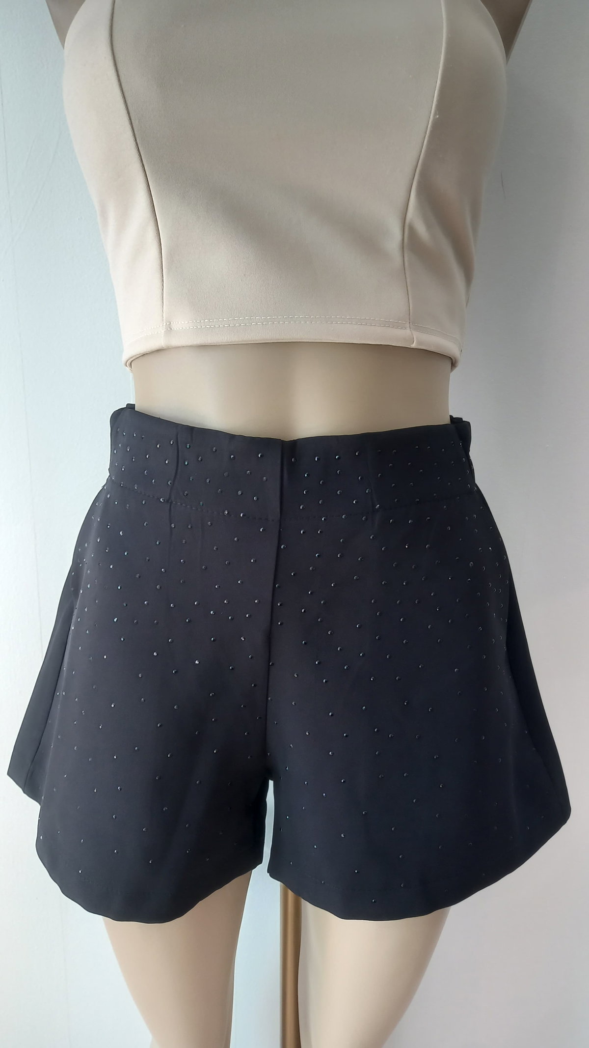 Short dama negro sastrero con stras
